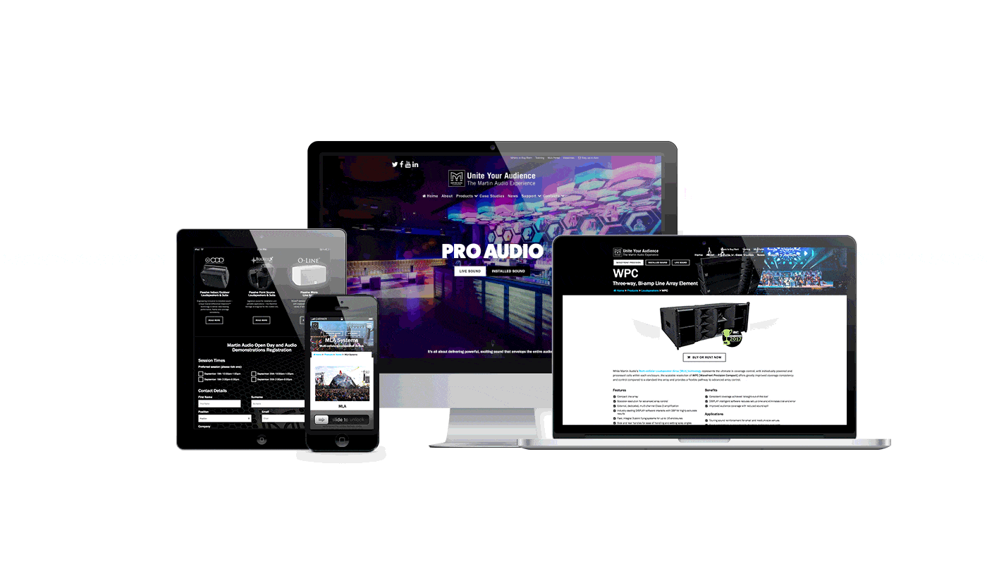 Working with Martin Audio's marketing team and studio head at Red Square I was tasked with developing, deploying and maintaining the martin audio site.