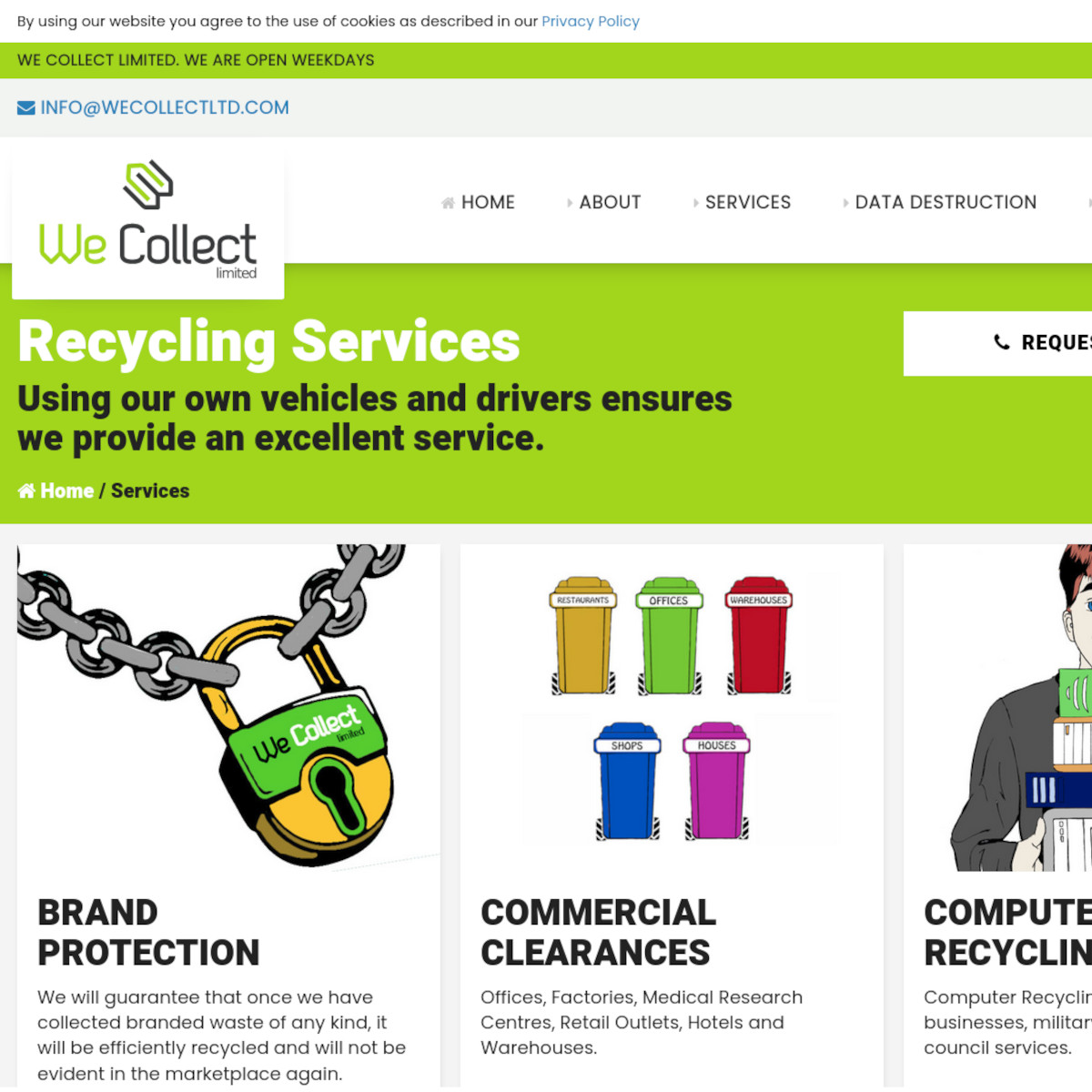 Working closely with We Collect Ltd a new visual identity was created that reflected both their eco friendly ethos as well as their friendly and professional approach to commercial electric waste recycling.