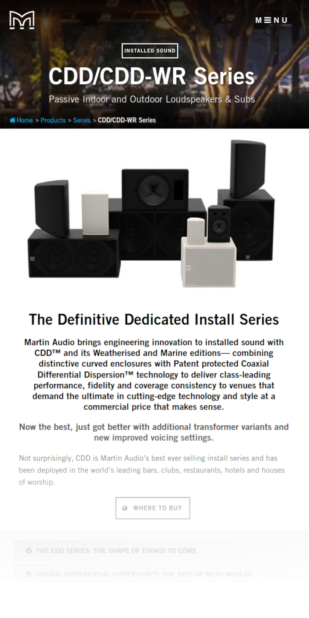 Brief: To create a responsive website with a custom CMS for press release, software and distributors. To maintain the site and convert briefs from Martin Audio's marketing department into functioning webpages.