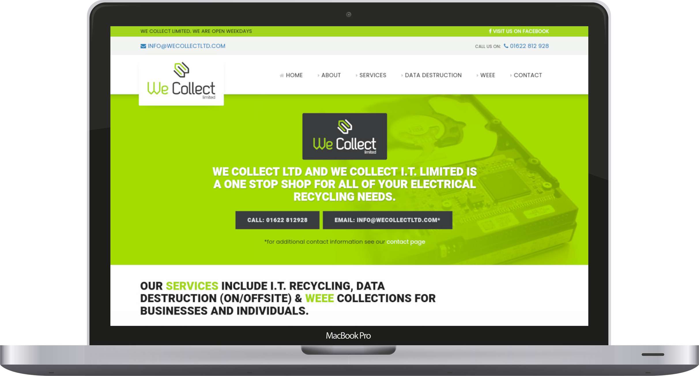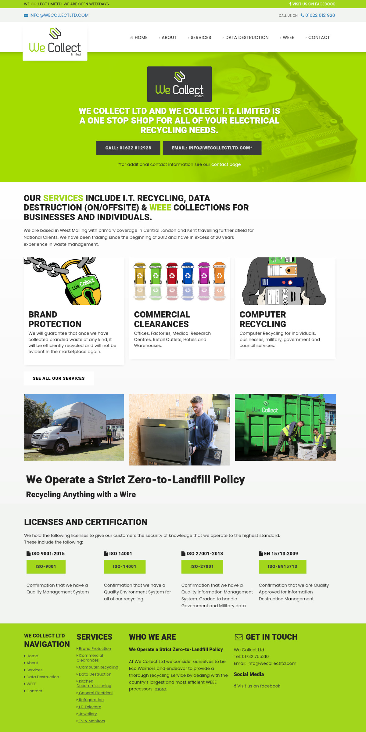 Working closely with We Collect Ltd a new visual identity was created that reflected both their eco friendly ethos as well as their friendly and professional approach to commercial electric waste recycling.